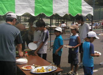 ![]() 今年もオンコートでの、いろいろなゲーム(その3)や テニスの試合、そして駐車場での露店など 大活躍のコーチングスタッフ そしてまとわり付くジュニアたち! |