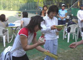 ![]() 優勝:松平・高橋組(船橋さくら) 実は松平さんが、ぎりぎりにエントリーし、 「遅刻したら、この優勝はなかったね!」と話していた。 8ゲームマッチを1日5試合は初体験。 限界に挑戦しての優勝で、自信になったのではないか。 続く鳥井杯では、ベスト32に残る快進撃だ! |